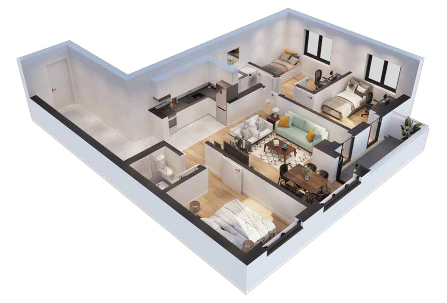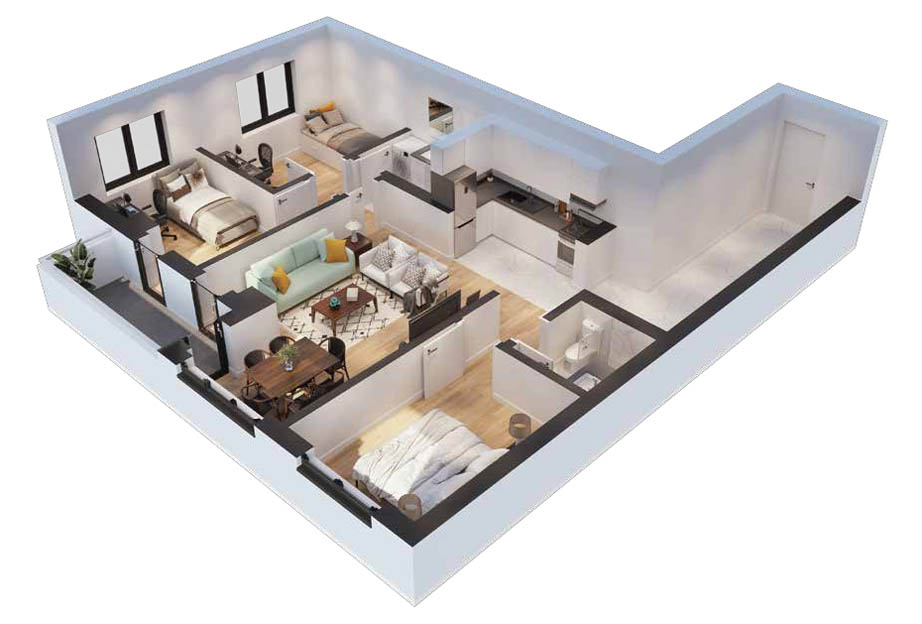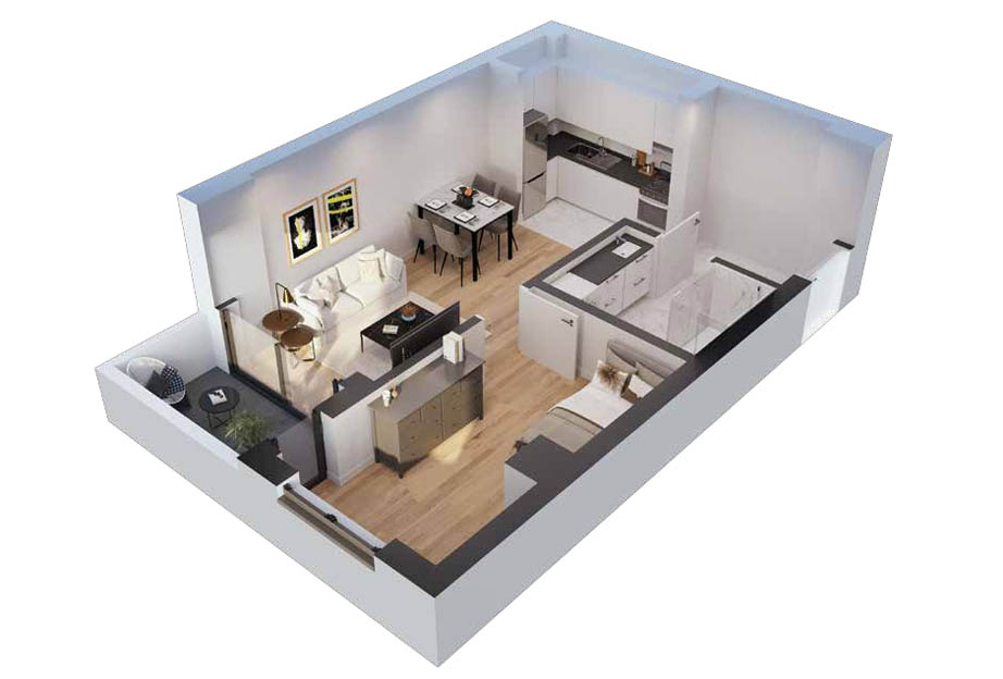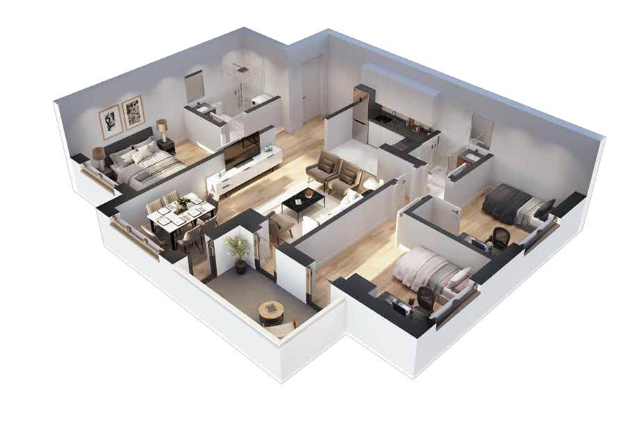 Со околу 200 апартмани, има разновидност на избори и по површина и во концепција. Приземјето на резиденцијата ќе се користи за развој на комерцијални дејности.
